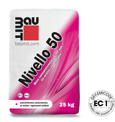Przeznaczona do wyrównywania oraz poziomowania nowych i remontowanych podłoży wewnątrz i na zewnątrz budynków, w zakresie grubości 2-50 mm, przed układaniem wszelkiego rodzaju okładzin podłogowych. Odporna na obciążenia skupione (ruch kółek meblowych).